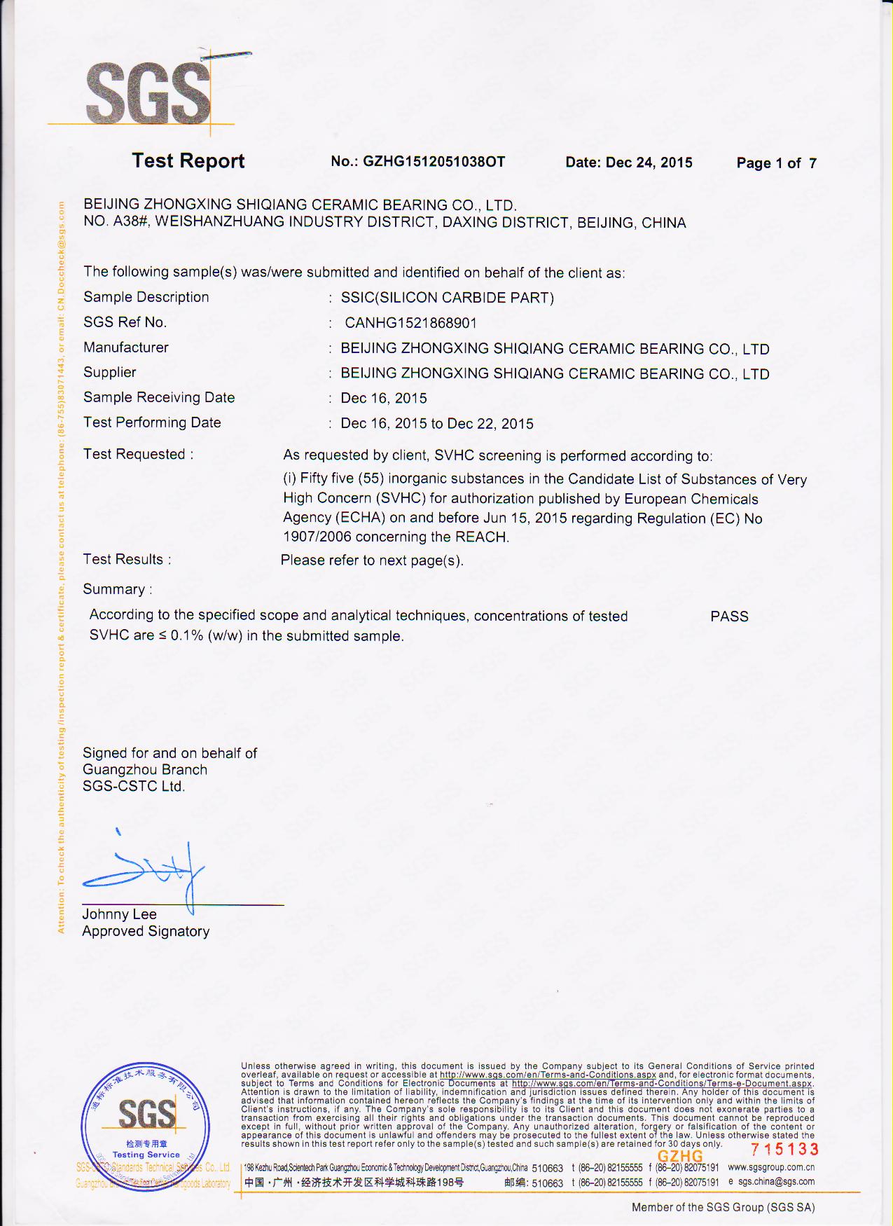 SSiC REACH 认证
